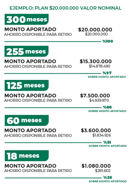 - El haber que le corresponde al Titular se determinará de acuerdo a lo establecido en la Tabla de Rescate que forma parte integrante del presente y conforme al siguiente procedimiento: se toma la vigencia del Título (primera columna), se multiplica el Valor Nominal del contrato por el guarismo de la segunda columna y se lo divide por mil.